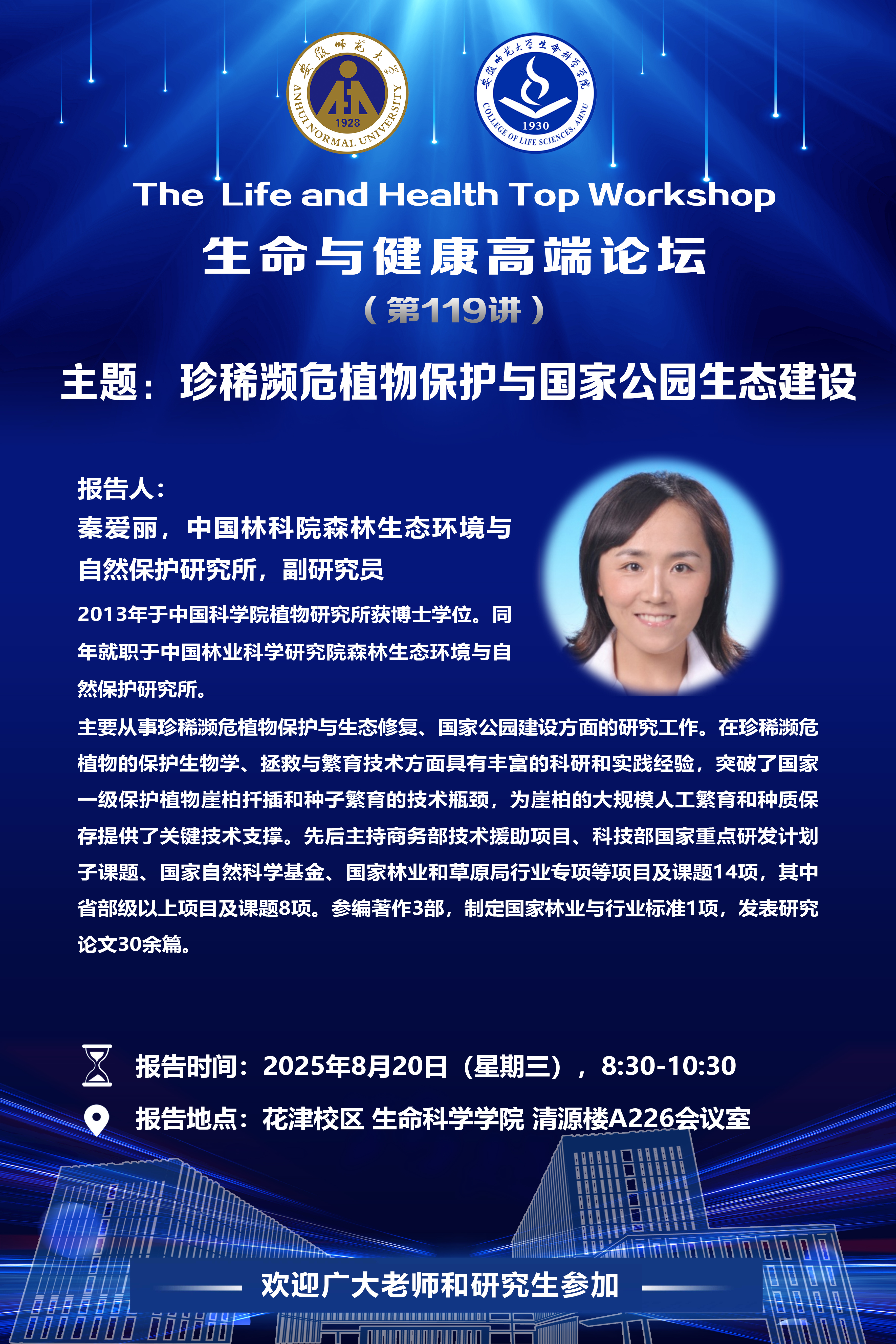 【学术预告】生命与健康高端论坛第119讲:珍稀濒危植物保护与国家公园生态建设