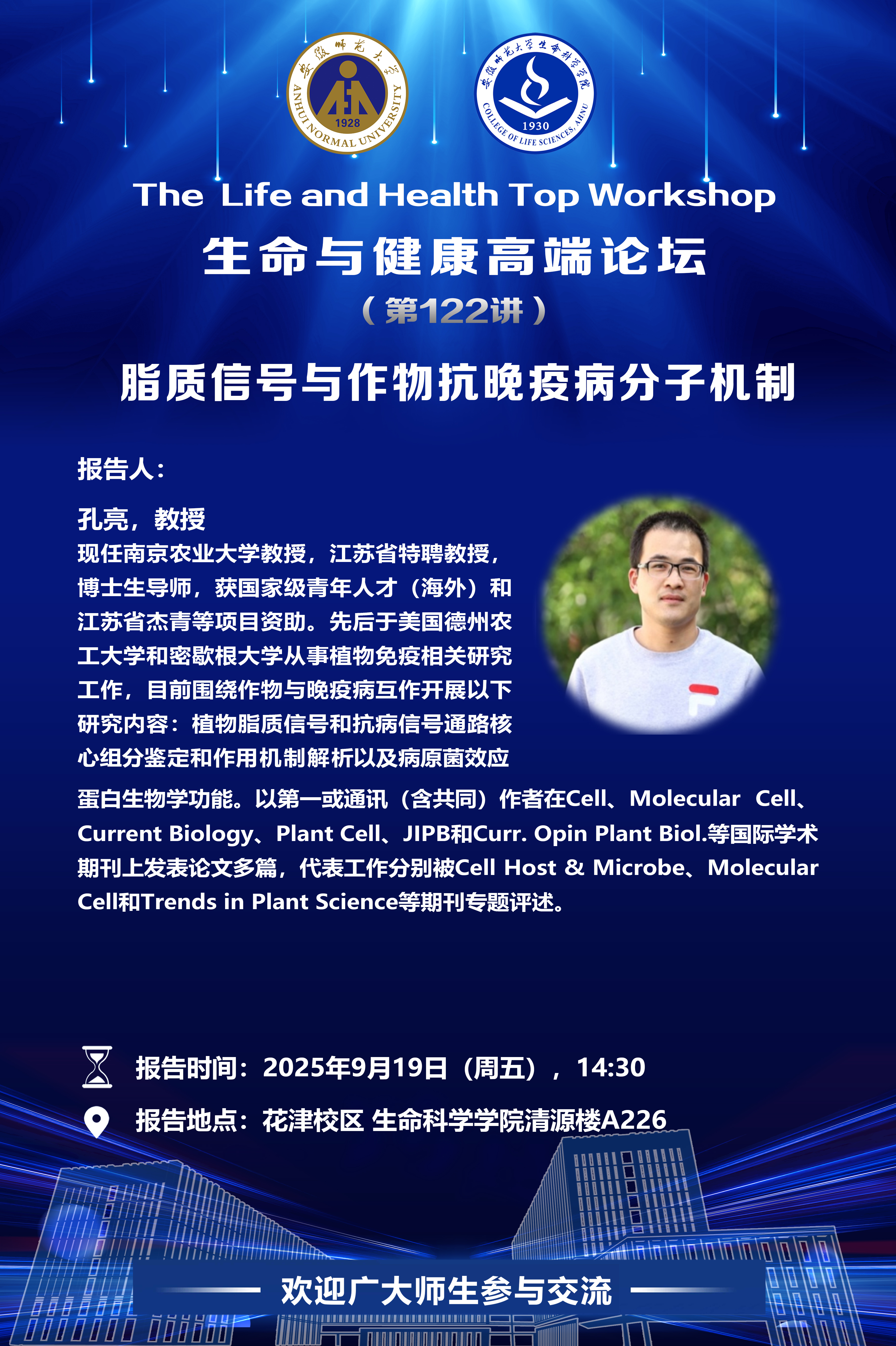 【学术预告】生命与健康高端论坛第122讲:脂质信号与作物抗晚疫病分子机制