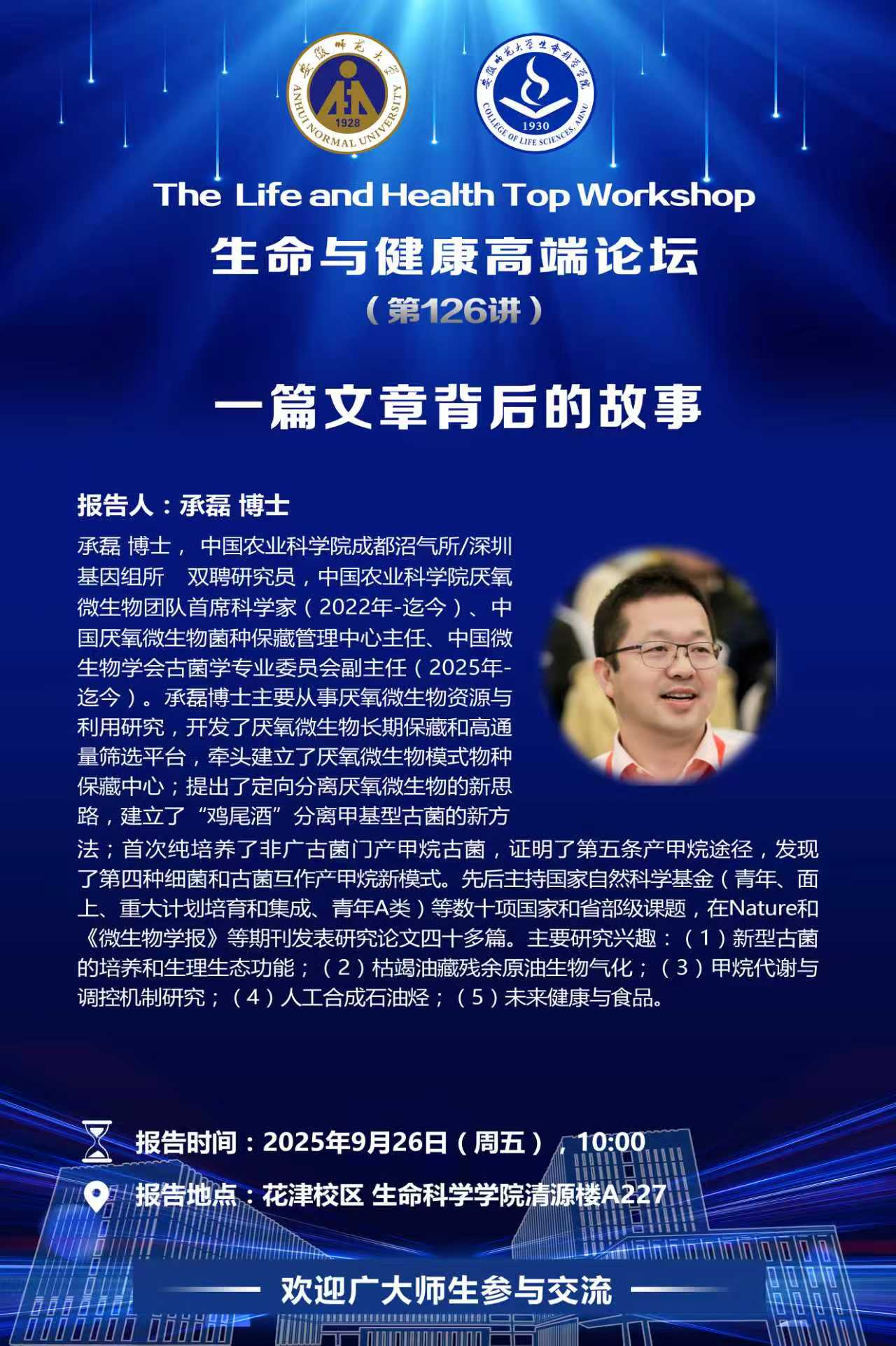 【学术预告】生命与健康高端论坛第126讲:一篇文章背后的故事